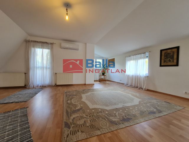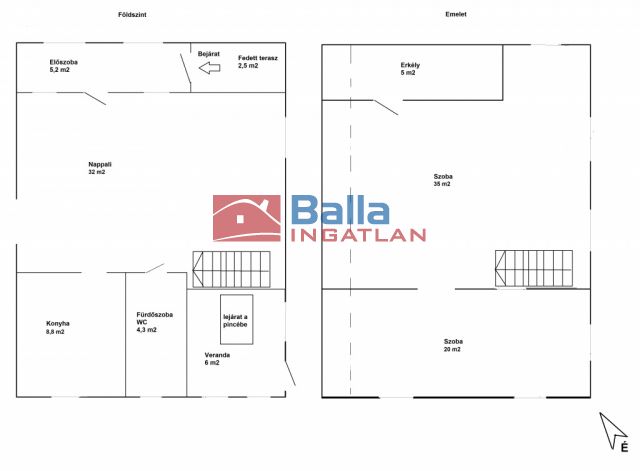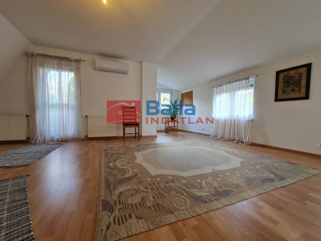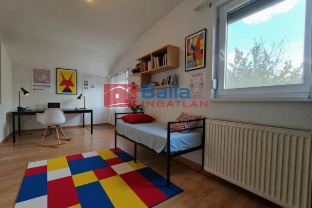 • Az emeletre a nappali sarkából induló lépcső vezet. Itt egy tágas, 35 m²-es szoba és egy 20 m²-es hálószoba található. A nagyobbik szoba a ház legvilágosabb pontja, egész nap besüt a nap, és innen nyílik az 5 m²-es erkély is, ahonnan körpanoráma tárul elénk. A szoba mérete és geometriája lehetővé teszi két kisebb hálószoba kialakítását is.