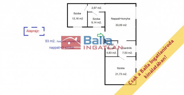 85 m² terület 3 szoba