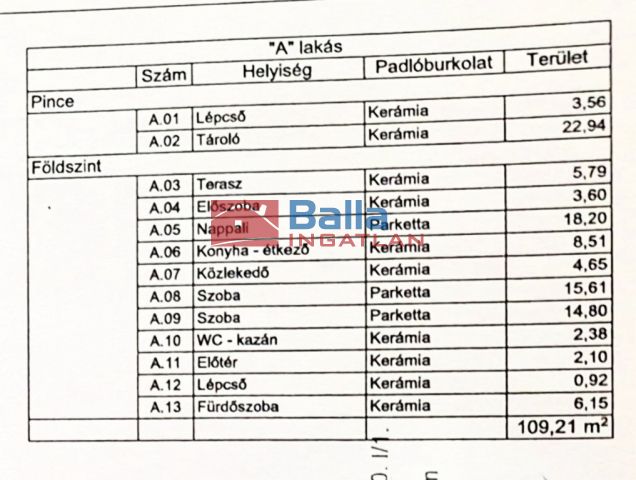 Egyéb tulajdonságok: terasz (6 m²), pince, kamra, külön wc, zárt autóbeálló