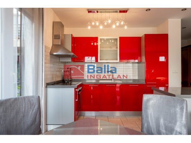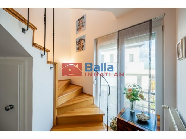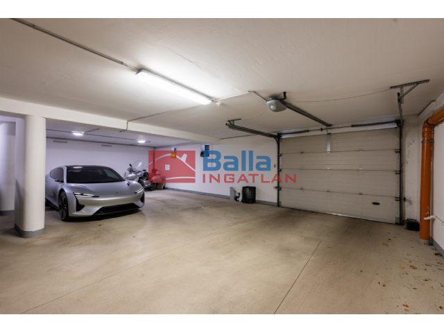 Az ingatlan különlegessége a dupla bejárat: mindkét szint elérhető a lépcsőházból, így a lakás akár két generáció együttélésére, vagy egy teljesen szeparált otthoni iroda kialakítására is alkalmas. Az esztétikum mellé praktikum is társul: a klímaberendezés, a korszerű kondenzációs kazán, a 12 m²-es privát tároló és a két teremgarázs-beálló a mindennapi kényelmet szolgálja. Az ingatlanhoz egy 30 m²-es saját kertrész is tartozik, ahol saját fűszerkertet vagy intim pihenősarkot alakíthat ki.