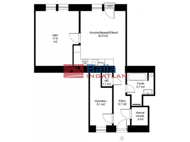 77 m² terület 2 + 1 félszoba