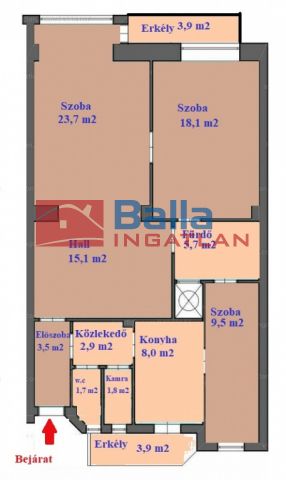 Egyéb tulajdonságok: erkély (8 m²), kamra, lift (1 db), utcai parkolás
